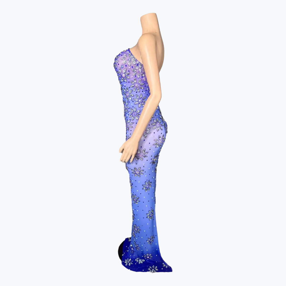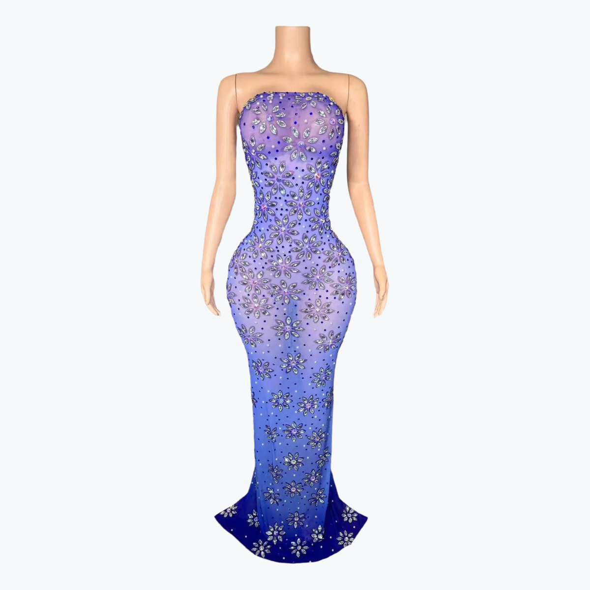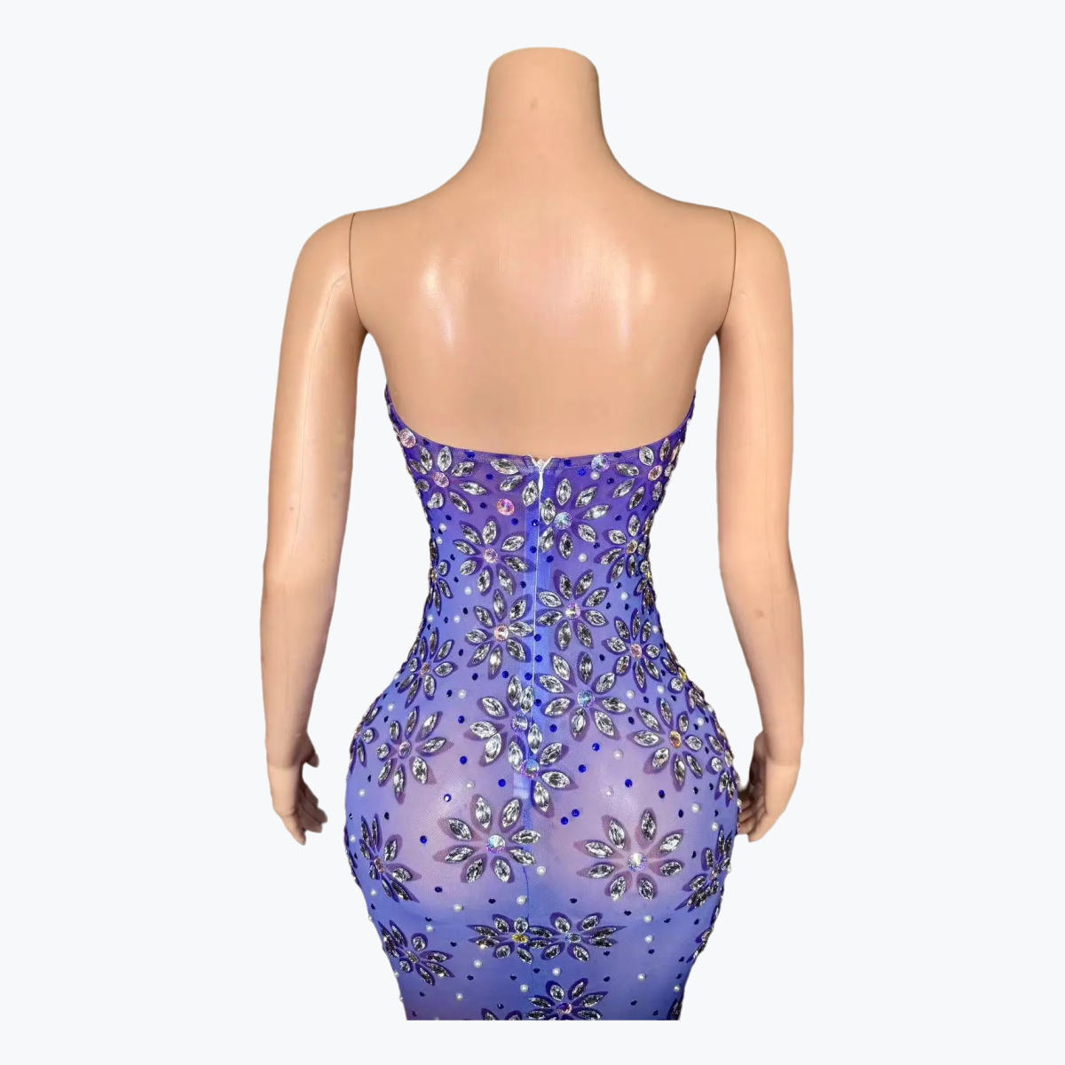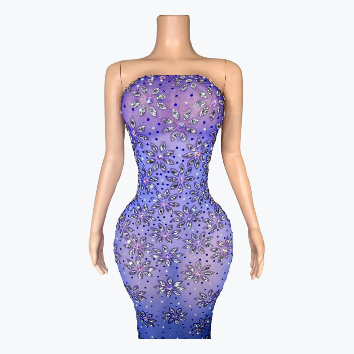 Handcrafted with meticulous attention to detail, the Lavender Dream is a stunning creation designed to captivate. This elegant dress is made from high-quality stretch fabric, ensuring a comfortable and flattering fit. The bodice is embellished with sparkling glass beads, adding a touch of brilliance and glamour.