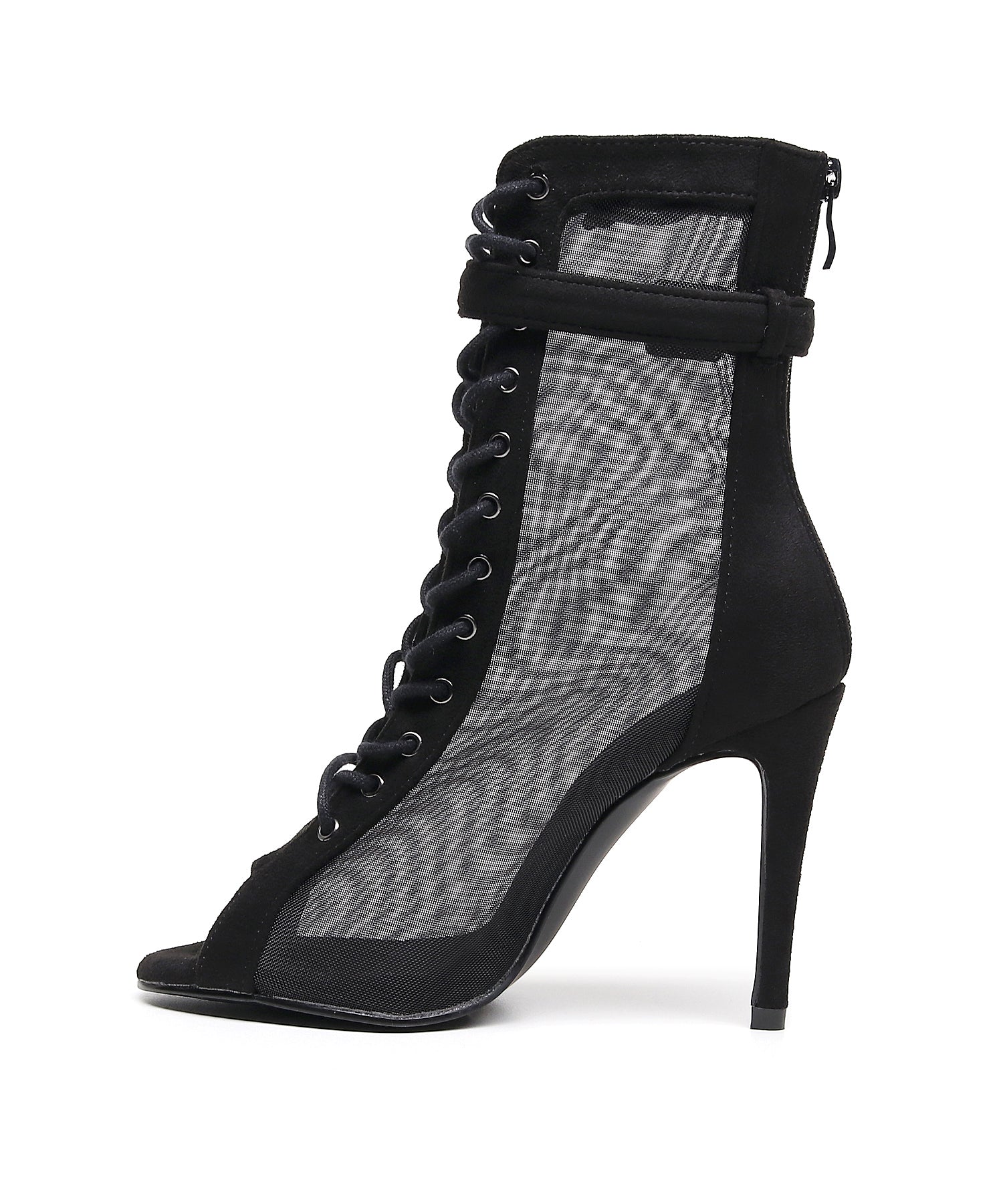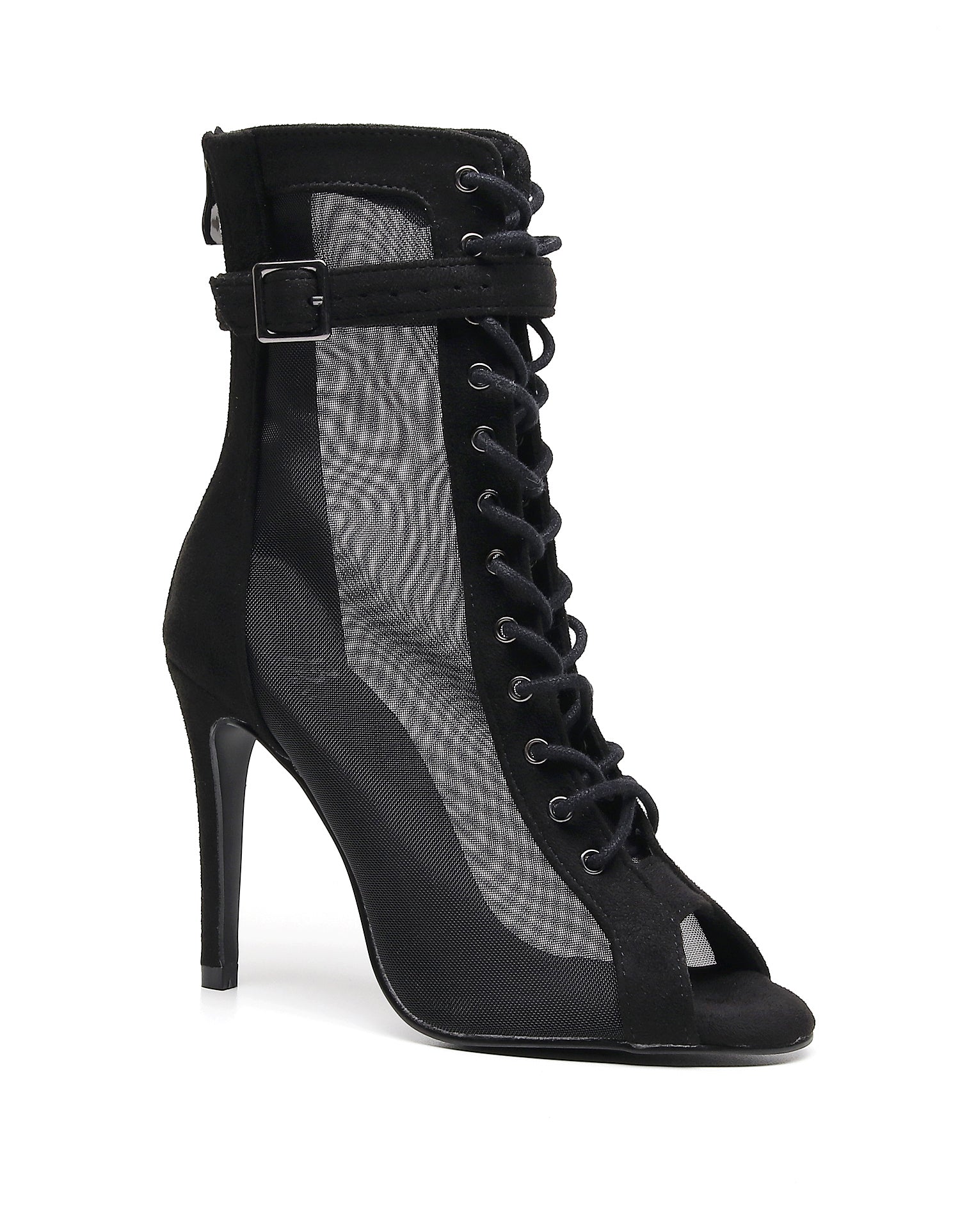 Fashion-Forward Design: The heels feature a luxurious velvet and transparent mesh design, offering a stylish, sensual look that’s also airy and comfortable.